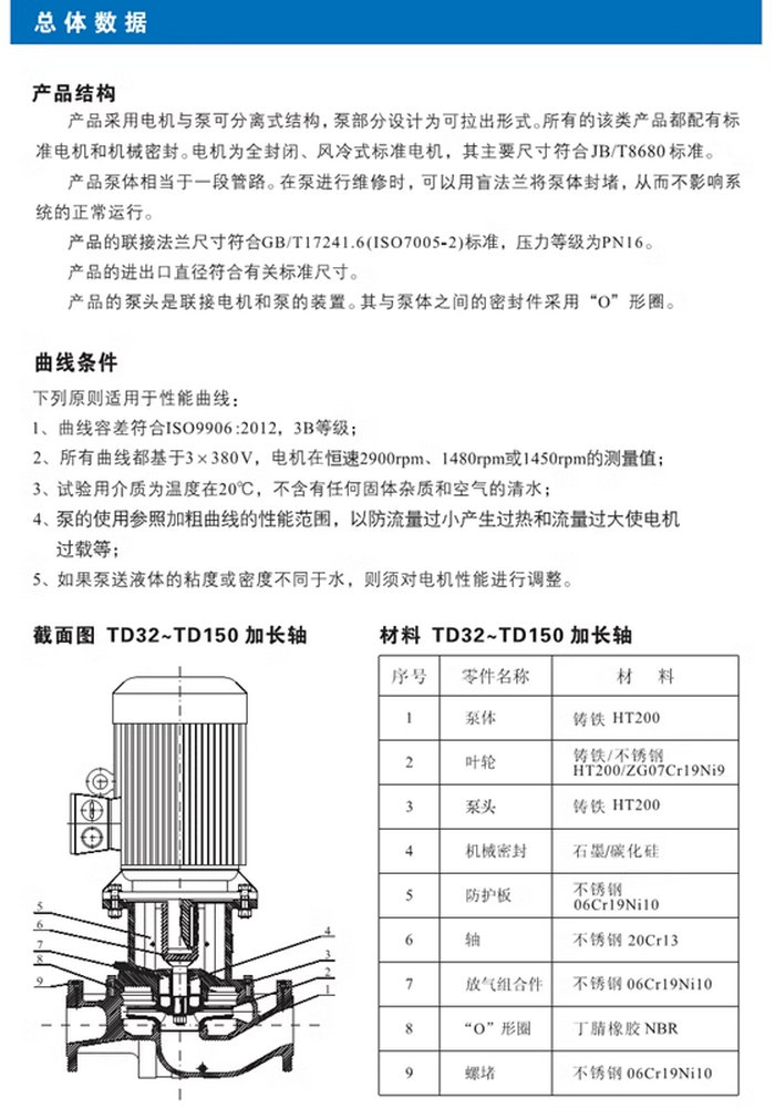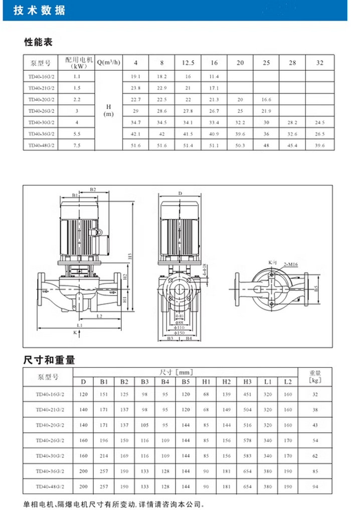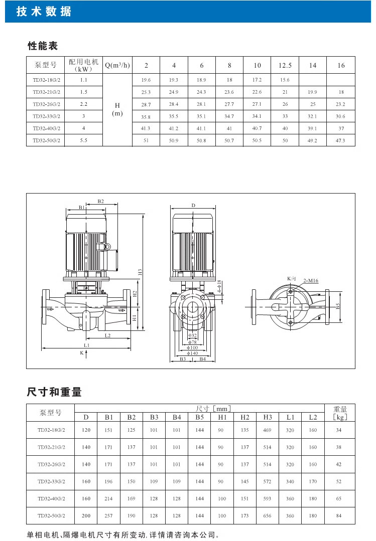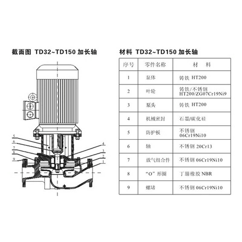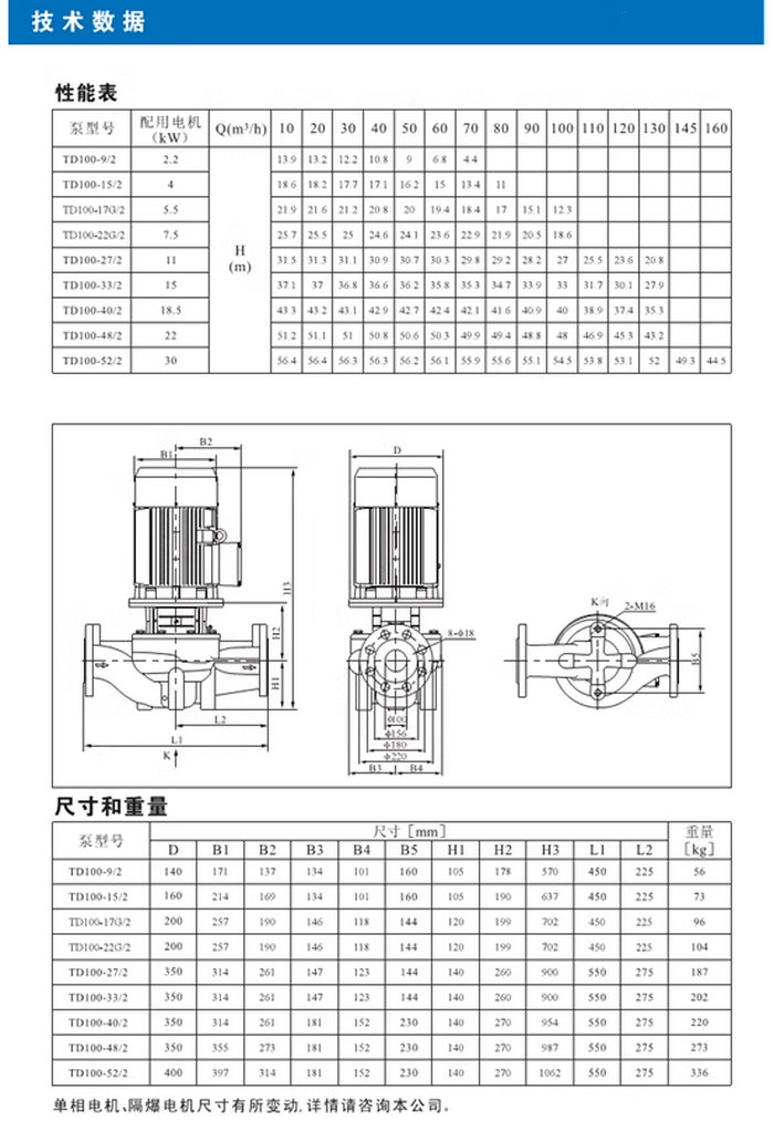 【南方】TD系列管道循環泵技術數據、性能參數、尺寸和重量