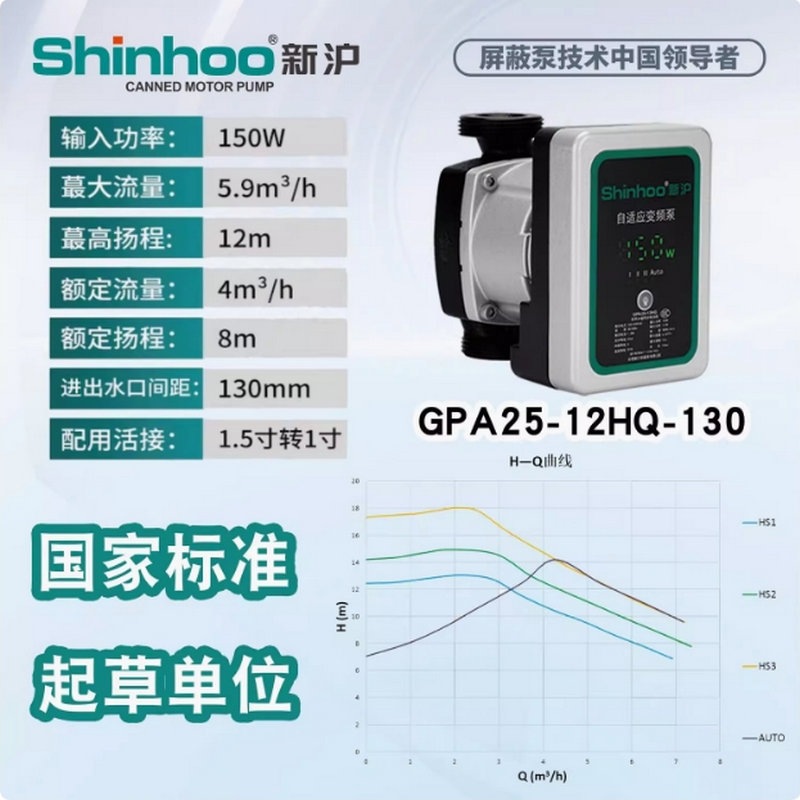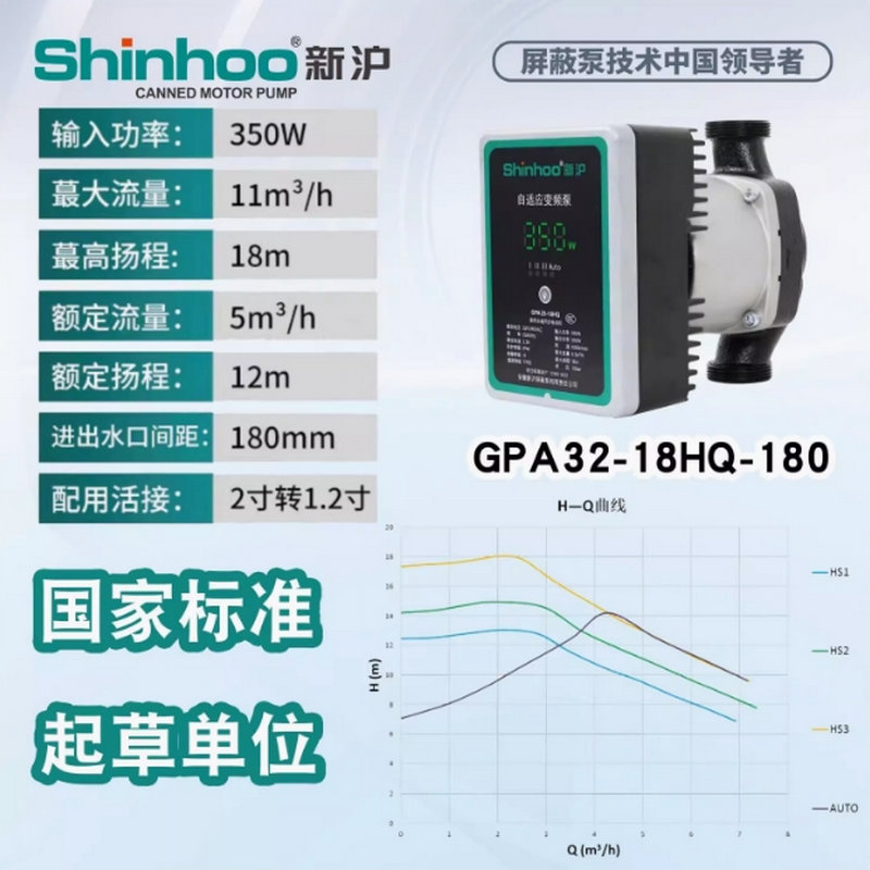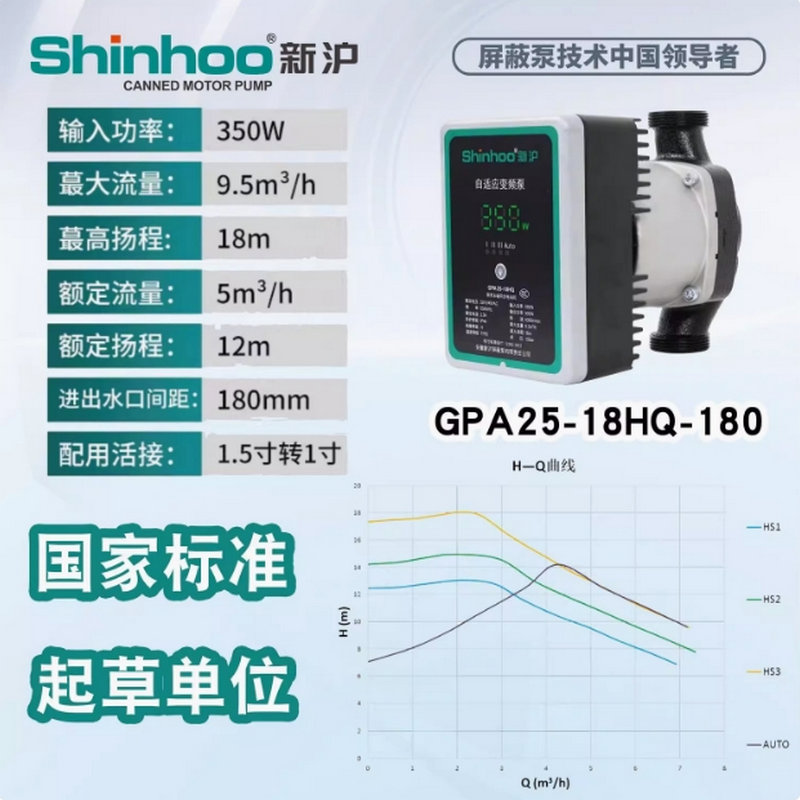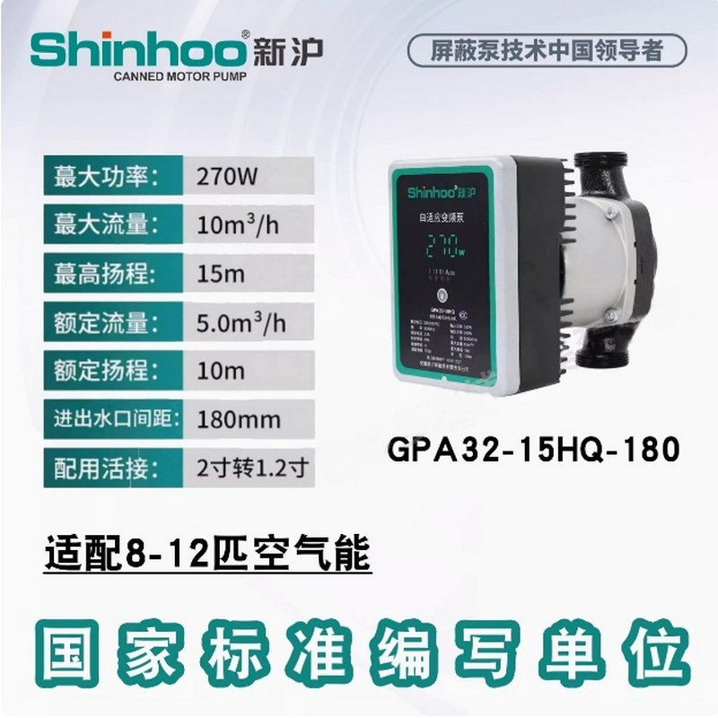 新滬永磁變頻自適應屏蔽泵GPA新款HQ靜音地暖空氣能兩聯供循環泵