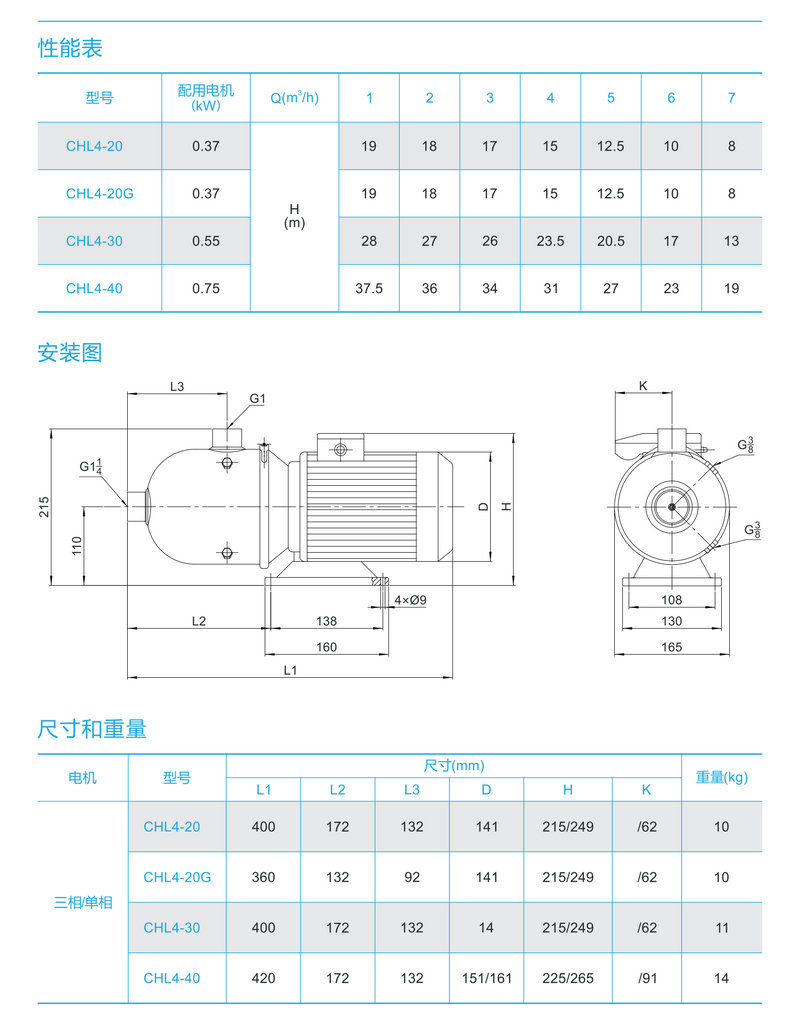 南方臥式不銹鋼多級離心泵CHL4-10/20/30/40/50